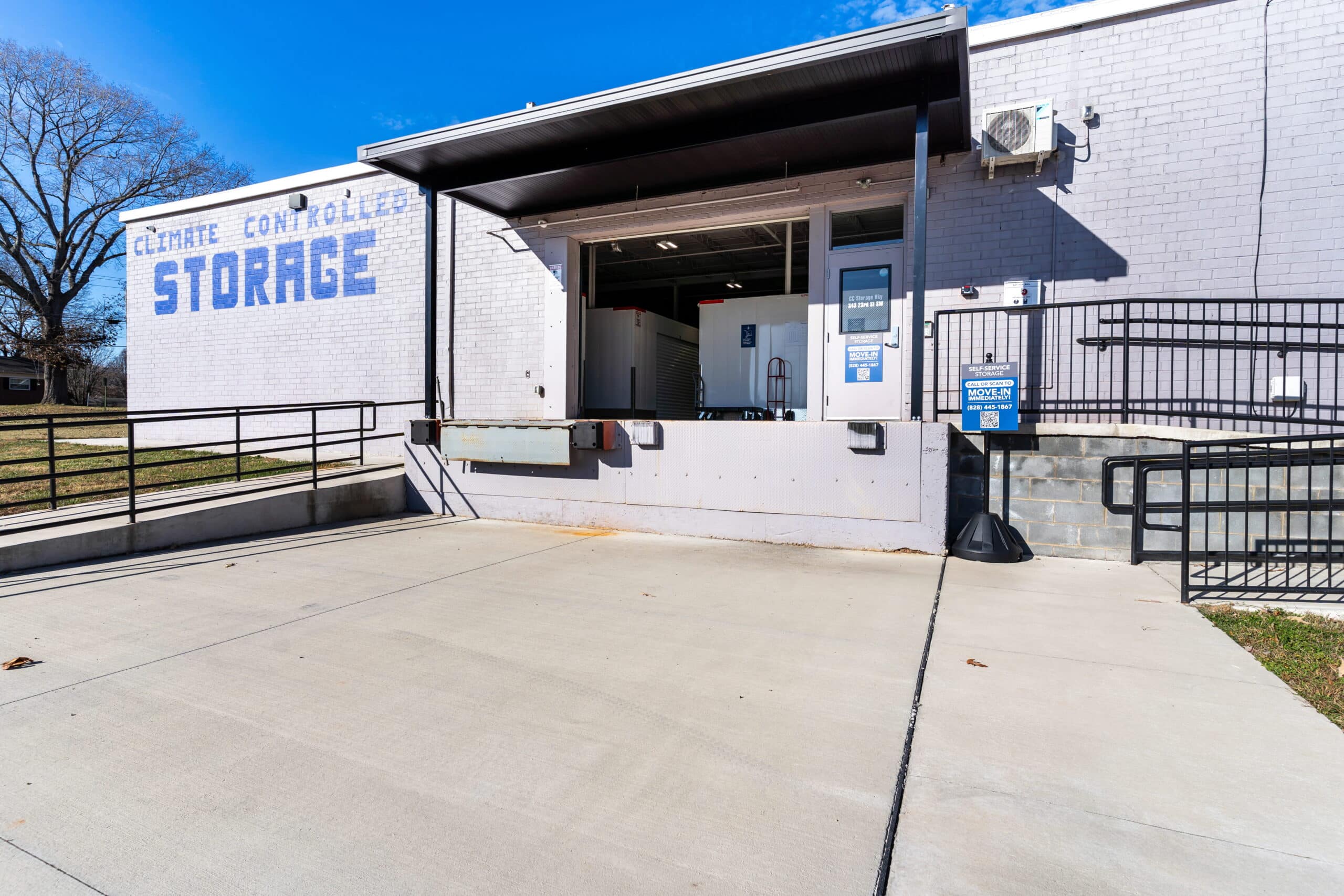 CC Self Storage offers clean, secure storage units in Hickory, NC at 1343 23rd St SW, Hickory, NC 28602 near Highway 70, I-40, and US-321. Whether you’re clearing space at home, storing business equipment, or organizing a move, you’ll find climate-controlled storage and ground-level access in a modern, easy-to-use facility. Located in Catawba County near Geitner Park, Valley Hills Mall, and the US-321 interchange, this facility serves ZIP codes 28602 and 28601. All rentals are month-to-month with no deposits and online leasing so you can move in on your schedule.